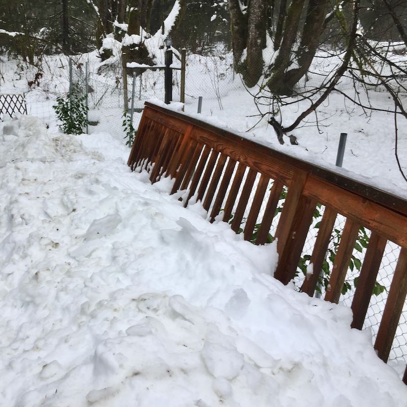 The snow began as Maura was in Tacoma visiting family. Suddenly, roads were icey and access up Indian Hill was limited to brave drivers in four-wheell-drive vehicles.